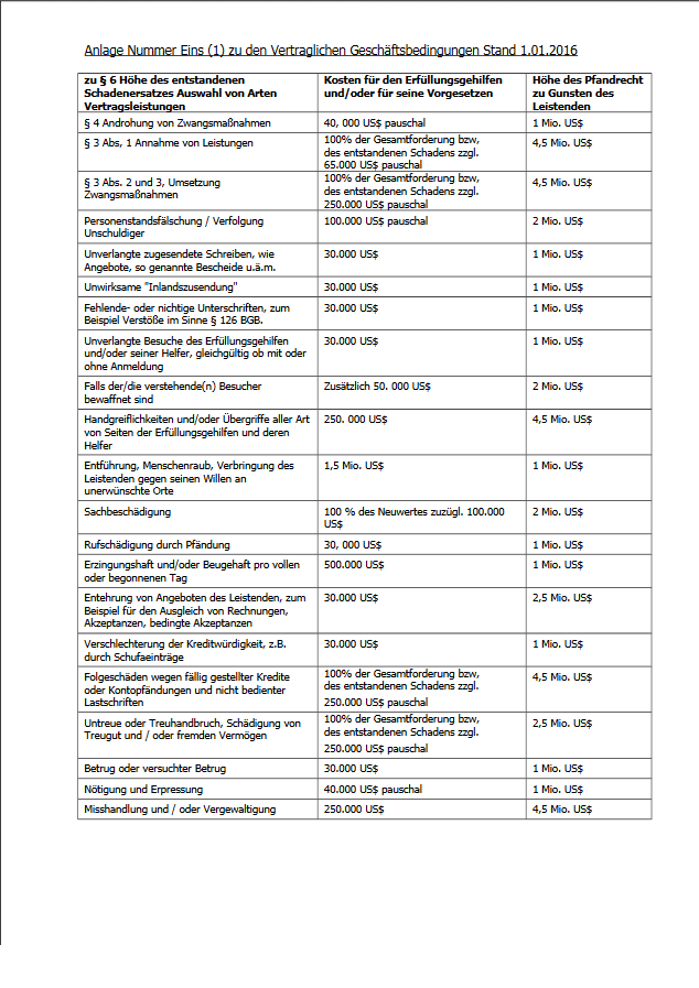 3.4. Das Inkrafttreten wird auch durch Weitergabe des Geschäftsvorganges und/oder durch Verweisungen an behauptete Staatsanwaltschaften und/oder Gerichte jeglicher Art ausgelöst